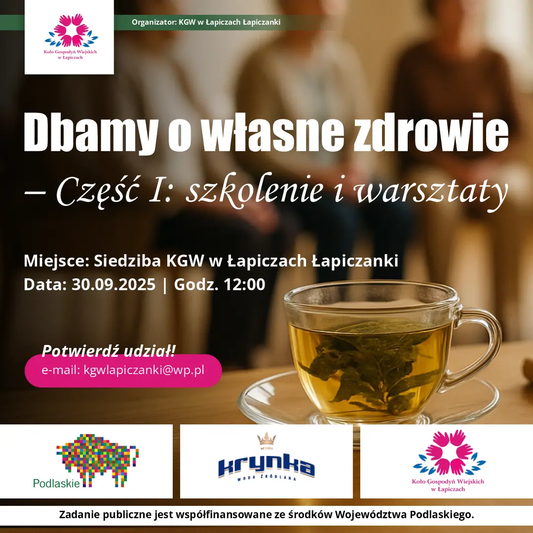 Dowiedz się jak zadbać o siebie! Serdecznie zapraszamy na spotkanie „Dbamy o własne zdrowie – szkolenie i warsztaty”, które przygotowaliśmy specjalnie z myślą o osobach, troszczących się o swoje ciało i dobre samopoczucie.